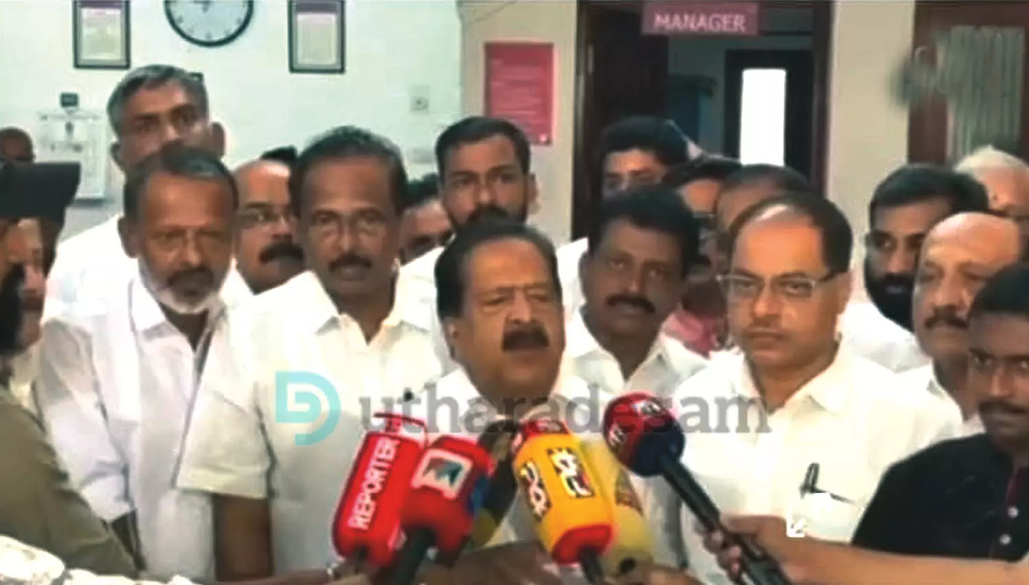 കോണ്ഗ്രസ് നേതാവ് രമേശ് ചെന്നിത്തല കാസര്കോട്ട് മാധ്യമപ്രവര്ത്തകരോട് സംസാരിക്കുന്നു