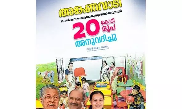 അങ്കണവാടികളില് നിന്ന് വിരമിച്ചവരുടെ പെന്ഷനും ആനുകൂല്യങ്ങളും വിതരണം ചെയ്യാന് 20 കോടി രൂപ അനുവദിച്ചു