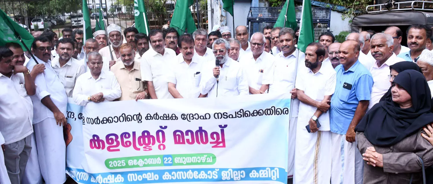 കേന്ദ്ര, സംസ്ഥാന സര്ക്കാറുകളുടെ കര്ഷക വിരുദ്ധ സമീപനങ്ങളില് പ്രതിഷേധിച്ച് സ്വതന്ത്ര കര്ഷക സംഘം ജില്ലാ കമ്മിറ്റിയുടെ നേതൃത്വത്തില് നടത്തിയ കലക്ടറേറ്റ് മാര്ച്ച് സംസ്ഥാന പ്രസിഡണ്ട് കുറുക്കോളി മൊയ്തീന് ഉദ്ഘാടനം ചെയ്യുന്നു