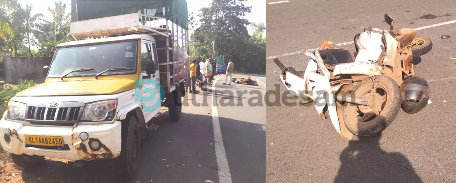 അപകടത്തില്പെട്ട പിക്കപ്പ് വാനും സ്കൂട്ടറും