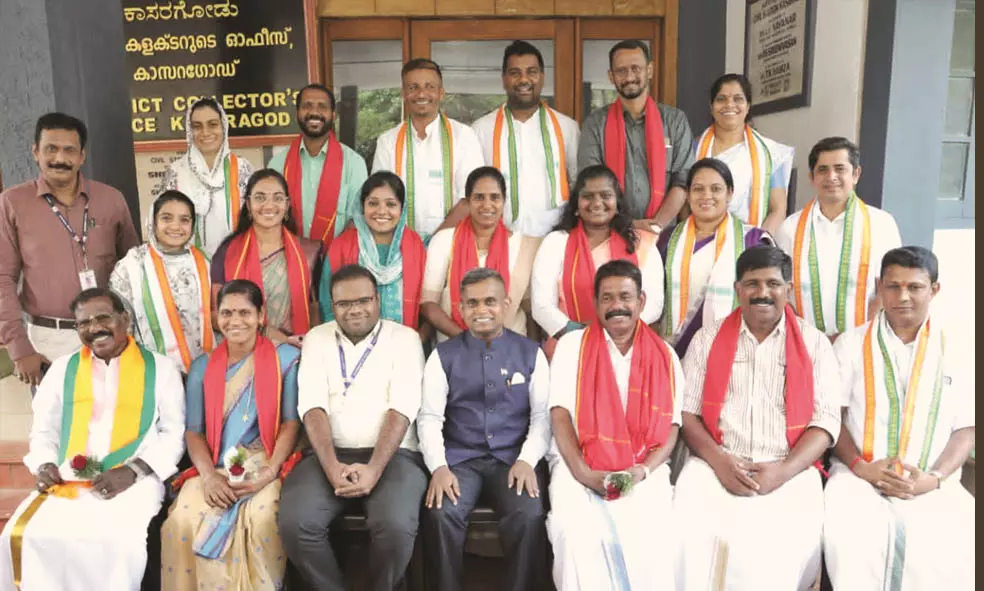 കാസര്കോട് ജില്ലാ പഞ്ചായത്ത് അംഗങ്ങളായി തിരഞ്ഞെടുക്കപ്പെട്ട ജനപ്രതിനിധികള് ജില്ലാ കലക്ടര്ക്കും മറ്റ് ജീവനക്കാര്ക്കും ഒപ്പം