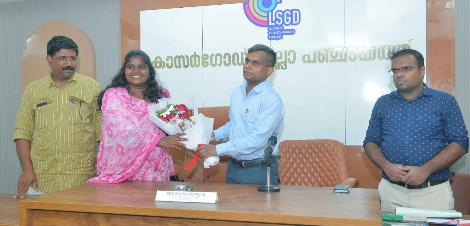 കാസർകോട്: കാസർകോട് ജില്ലാ പഞ്ചായത്ത് വൈസ് പ്രസിഡണ്ടായി കെ കെ സോയയെ തിരഞ്ഞെടുത്തു. ജില്ലാ പഞ്ചായത്ത് ഹാളിൽ നടന്ന തിരഞ്ഞെടുപ്പിൽ എട്ടിനെതിരെ ഒൻപത് വോട്ടുകൾക്കാണ് കെ കെ സോയ ജില്ലാ പഞ്ചായത്ത് വൈസ് പ്രസിഡണ്ടായി തിരഞ്ഞെടുക്കപ്പെട്ടത്. ജസ്ന മനാഫ് ആയിരുന്നു എതിർ സ്ഥാനാർഥി. പെരിയ ഡിവിഷൻ പ്രതിനിധിയാണ് കെ കെ സോയ.ഒരംഗം വോട്ടെടുപ്പിൽ നിന്ന് വിട്ടു നിന്നു.