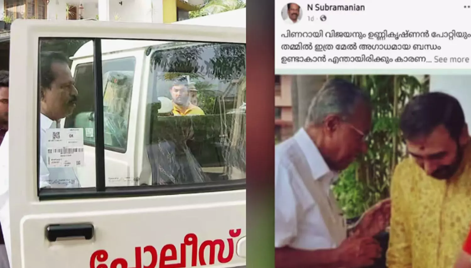മുഖ്യമന്ത്രിയുടെയും പോറ്റിയുടെയും ഫോട്ടോ വക്രീകരിച്ച് പ്രചരിപ്പിച്ചു; കോണ്ഗ്രസ് നേതാവ് എന്. സുബ്രഹ്മണ്യന് കസ്റ്റഡിയില്