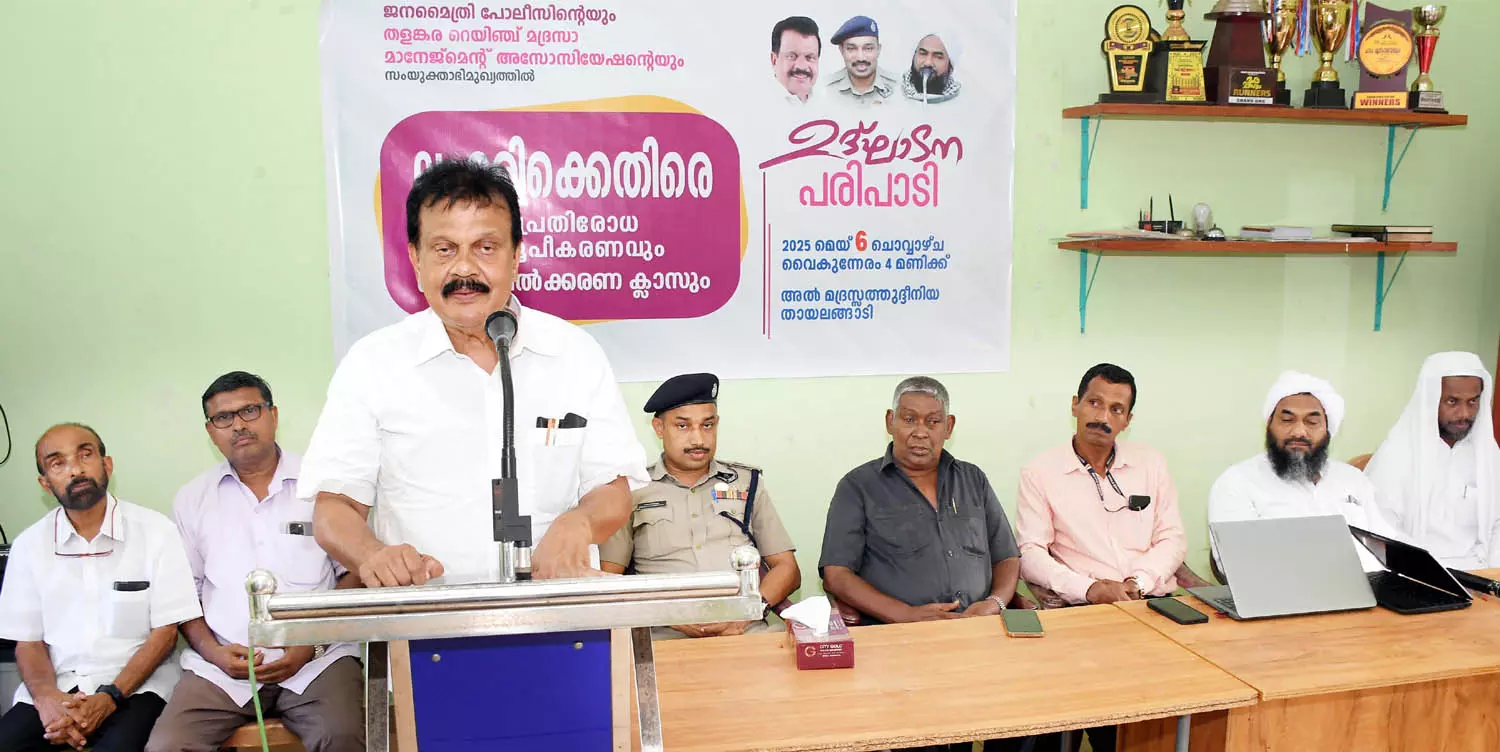 ജനമൈത്രി പൊലീസും തളങ്കര റെയ്ഞ്ച് മദ്രസ മാനേജ്മെന്റ് അസോസിയേഷനും സംയുക്തമായി സംഘടിപ്പിച്ച ലഹരി വിദുദ്ധ ബോധവല്ക്കരണ ക്ലാസ് എന്.എ നെല്ലിക്കുന്ന് എം.എല്.എ ഉദ്ഘാടനം ചെയ്യുന്നു